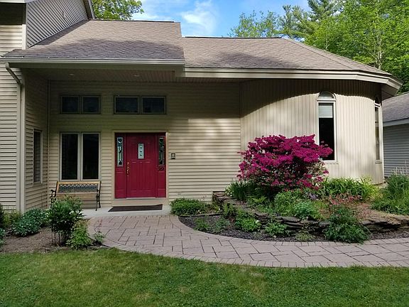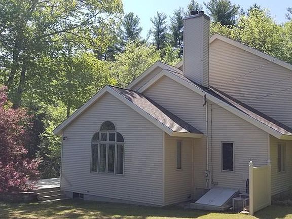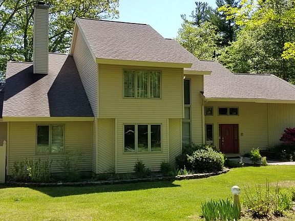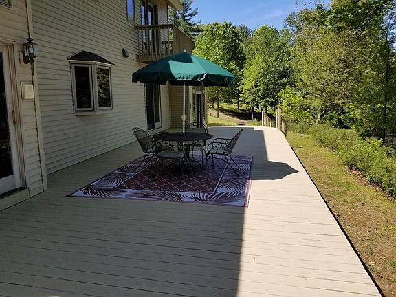 Private resort style year round waterfront on Baker Pond. Custom Built 3600 sf contemporary on 1.75 ac open lot. Full recreation including bass fishing, kayaking, swimming, motor boating, jet ski, sailing, paddle boarding. Private sandy beach with dock. East facing waterfront dining on 72 ft deck. One owner of the bright, open, flowing floor plan with 2x6 construction throughout. Huge kitchen with newly updated stainless steel appliances. Custom cabinets, counter, lunch bar, loads of storage. Kitchen eat-in area with sliders to deck. Unique octagonal family room with hand hewed beamed ceiling. Sunken living room has wood burning fireplace with french doors opening to deck. Spacious formal dining room w/sliders. Great for entertaining. 3.5 bathrooms. Master bedroom faces water with private Jacuzzi in en suite bathroom. Office is optional 4th bedroom. New oil furnace with 3 heating/cooling zones with Icynene insulation. Security system. 2 storage sheds. Maintenance free vinyl ext.