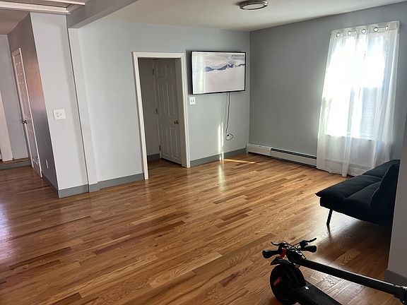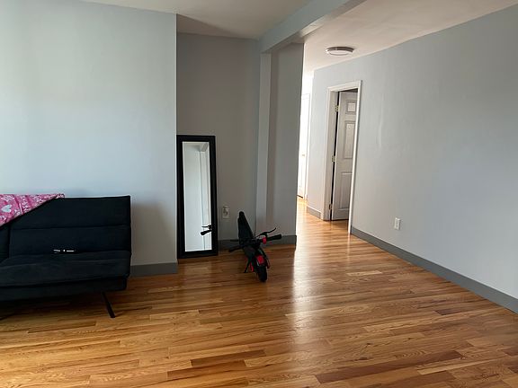 Move in condition renovated apartment which is spacious and shows well. Its on the third floor and has two bedrooms both have closets, in the entrance hallway there is a coat closet as well. The eat in kitchen (electric stove , vent and refrigerator) has an open concept with the livingroom. One full bathroom with stand up shower. Rear porch for sitting outside. One car parking in rear driveway.