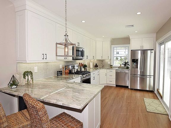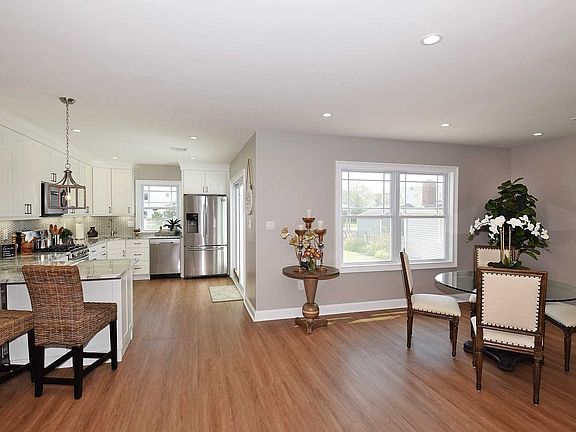 Total renovation just completed! 55 feet of 4 year old bulkhead in mid-block location.. Features new siding, flooring, windows, kitchen, baths (2.5), heat and CAC and much more. Includes many energy efficient features including spray foam insulation. Flood insurance only $744 per year, along with low taxes. Large attic area for additional storage.