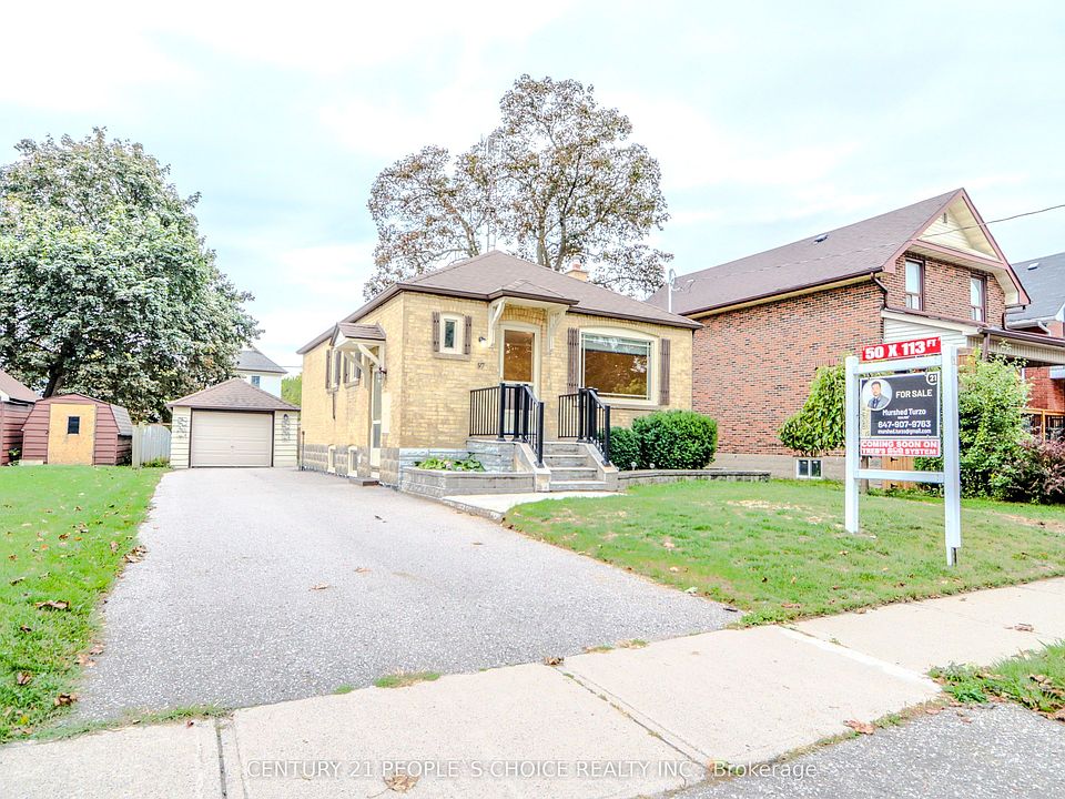 Welcome to 97 Arlington Ave! Gorgeous 2 bedroom brick bungalow in one of this community's highly-sought after neighbourhood on a very private cul-de sac. The main floor features bright and inviting open-concept living and kitchen area. Newly installed Engineered Hard-wood flooring (Sep 2025) enhances the living area. Water-proof kitchen tiles (Sep 2025) and picturesque kitchen island (Sep 2025) add a modern finish to to the eat-in kitchen experience. Freshly painted and upgraded lighting features (Sep 2025) bring a functional and stylish look to the home. Two spacious bedrooms featuring hard-wood floors, cozy windows and reach-in closets are all pefect for family-living. Seperate entrance to the finished basement, with huge recreational room with above-grade windows ideal for in-law suite. Newly installed staircase (Sep 2025) ,Contemporary vinyl flooring (Sep 2025) for the entire basement, a modern 3-piece washroom (June 2024), an added 7 ft 4 inchs by 9 ft 5 inchs storage area (Sep 2025) to keep your living spaces tidy. The home includes an updated 2 stage RunTru Natural Gas Furnace (Sep 2025) designed for efficiency and durability converted from Oil Tank. Enormous private backyard with 50 x 113 ft lot showcasing charming floral yard ideal for outdoor gatherings, barbeques, and relaxing in the sun. Detached garage enhances the home's functionality and ease. This gem is so close to Oshawa Golf and Curling Club, Alexandra Park, Lakeridge Hospital, walking distance to Dr. S.J. Phillips Public School and O'Neil Collegiate Vocational Institute. A move-in ready home with character and endless possibilties awaits you in the vibrant O'Neill neighbourhood.