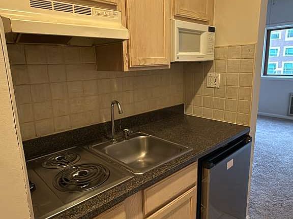 Welcome to this studio apartment perfectly situated in the heart of downtown. This bright and well-maintained unit features a microwave and dishwasher along with stove for your convenience, along with access to shared laundry facilities and elevator service within the building.
