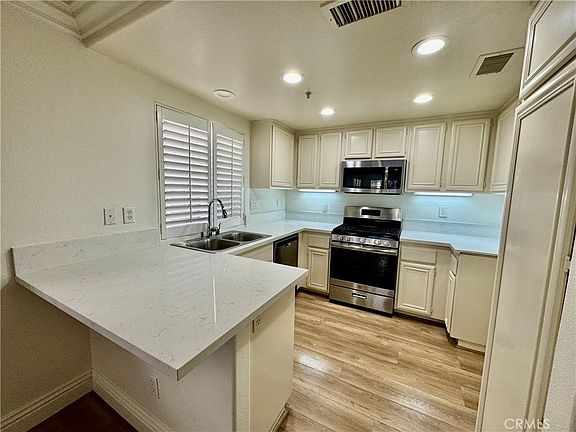 Welcome to this beautiful three-bedroom, 2.5-bath detached home in the highly sought-after Magnolia community of Rancho Santa Margarita. This stunning residence boasts laminate wood flooring on the main level, plantation shutters, and crown molding throughout, creating an elegant and inviting atmosphere. The interior has been freshly painted, including all walls, baseboards, and doors, and features upgraded smoke and carbon monoxide detectors for added peace of mind.