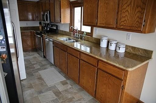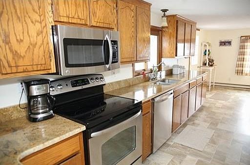 Welcome home, nothing left to do here but unpack, launch your boat and enjoy the views. Completely remodeled, everything from water heater to roof and everything in between; flooring, windows, appliances, bathroom and more. Living room with gas stove for supplemental heating. Spectacular views with the 100' of waterfront on full access Baker Pond. Spacious yard with ample room for entertaining or gardening. Enjoy sunset evenings on the wrap around deck or gazebo. The oversized garage has plenty of room for recreational gear with 2 additional rooms above, finish this space off for the perfect in home office with a view. Easy one level of living just steps away from the water and a quick ride to Route 20 with access to major highways. This property can be purchased with any financing option including NO money down!