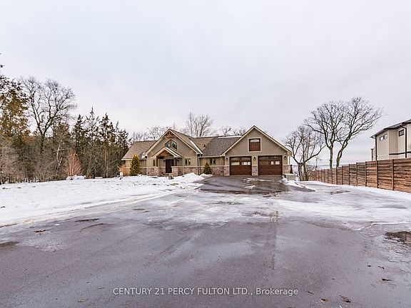 This Luxurious Lakehouse Is A Private Oasis With Ample Space, Outdoor Recreation Including Lush Gardens, Nature Trails And Water Activities W/ Private Dock (2021). The Estate Boasts An Exquisite Blend of Sophistication & Nature. Integrated With The Tranquility Of Its Surroundings. Features Expansive Windows With Picturesque Views Of The Lake. Primary Suite Proves To Be A Serene Escape Also Overlooking The Water. Bask In The Light That Cascades Through The Main Common Area, Flowing Into The Formal Dining & Gourmet Kitchen W/ Pantry & High End Appliances. Saunter Down To The Lower Level With Walkout To Patio & Yard. 2 Large Bedrooms, Games Room & Separate Family Room For Additional Entertaining. All Nestled On 10 Sprawling Acres Of Opportunity & Beauty. No Part Of Owned Acreage Is Conservation Area. Back Of Propertyline Accesses Conservation Park With Private Gate.