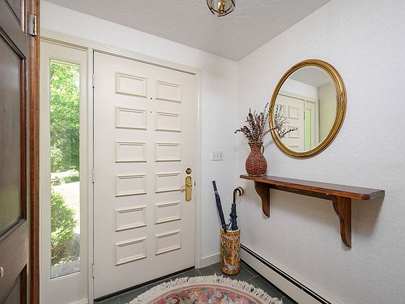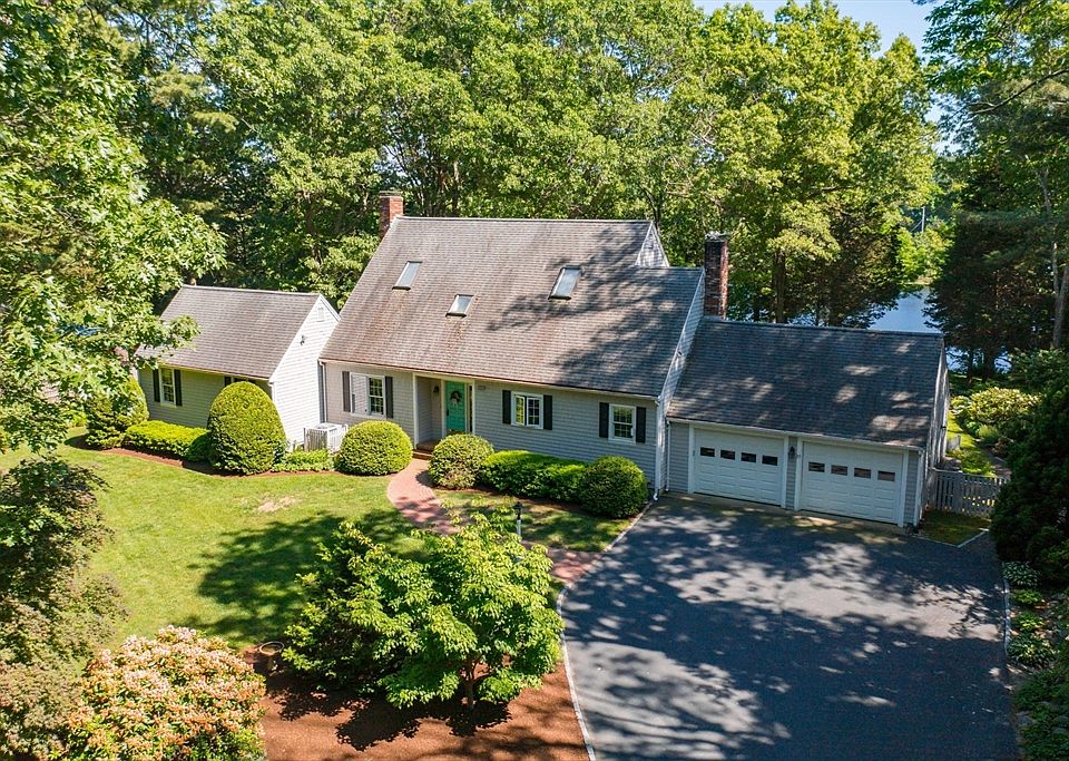 Welcome to your idyllic retreat set in highly sought after Damon's Point! Nestled along the tranquil shores of a picturesque pond, this charming Cape style home set on 3.26 acres offers a perfect blend of comfort and elegance. Boasting three bedrooms and three baths, it provides ample space for both relaxation and entertainment. Step inside to a large kitchen with Cherry cabinets and recessed lights. First floor master suite with private bath and sliders leading to the deck. The sun room, filled with windows, makes for the perfect place to have your morning coffee and take in the view. Highlights include, 2 fireplaces, skylights galore, whole house generator, newer boiler, central air, 2 car garage and 2 decks. Natures paradise views that lead down to the pond, and walking distance to the point overlooking the north river. Close to beaches, restaurants and marinas. This is the home you've been waiting for.