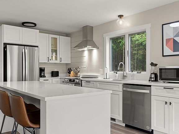 You’re invited to a completely renovated 4-bedroom mountain retreat, ideally located between the charming village of Wilmington and the slopes of Mount Snow. On the main level, you will find an open floor plan featuring a brand new expanded kitchen equipped with stainless steel appliances, a large central island, and quartz countertops. The kitchen seamlessly flows into the dining space and a cozy living room, where you can enjoy the warmth of a wood-burning fireplace surrounded by beautiful brickwork. Large windows face the western mountains, allowing plenty of natural light to fill the space. The main level also includes a bedroom and a fully renovated bathroom. On the third level, there are two additional bedrooms and a completely renovated Jack and Jill bathroom. With bedrooms on all three levels there is plenty of room to spread out. The lower level features a bedroom, renovated bathroom, bonus room and large game room with lounge space. The convenience of two sets of washers and dryers allows you to tackle chores quickly, giving you more freedom to explore and enjoy outdoor adventures. Soak in the incredible mountain views from the large wrap-around deck and relax in a wood barrel 4-person sauna. New flooring, tile, lighting, interior paint and a freshly painted exterior add to the appeal. This property is turn-key with a fresh new look, ready for you to enjoy.
