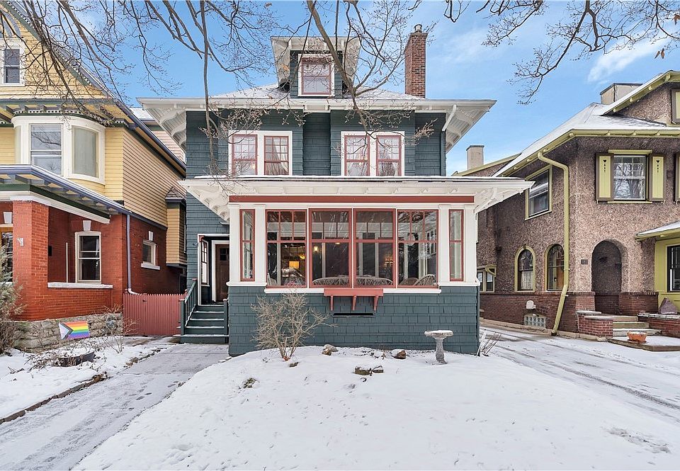 Stunning 4 bed, 1.5 bath home w/ TWO CAR GARAGE on one of the most desirable streets in Buffalo. Past the ceramic tile floor in the foyer, this gem welcomes you w/ warm, original woodwork & hardwood floors throughout. The spacious living room w/ gas fireplace leads you through the French doors to the enclosed porch – perfect for relaxing alone or w/ family & friends. The elegant dining room features coffered ceilings & leads to the pergola-covered deck in the fully-fenced back yard. The open concept kitchen boasts new counters, a ceramic subway tile backsplash & SS appliances. The large, charming master bed is flooded w/ natural light & boasts a gas fireplace, a walk-in closet & a seating area. Two more 2nd floor beds w/ walk-in closets, one has a private, walk-out balcony! Large bath w/ walk-in shower, a relaxing, claw foot soaking tub, dbl sinks & fresh paint. Completely finished 3rd floor w/ additional bed is perfect for home office, playroom, yoga studio, etc. Finished basement has been professionally waterproofed features a home theatre. Impeccably maintained, updated mechanics, leaded glass windows, endless charm! Open Weds 5-7, Sat & Sun 1-3. Offers start at 1 PM on 2/7.