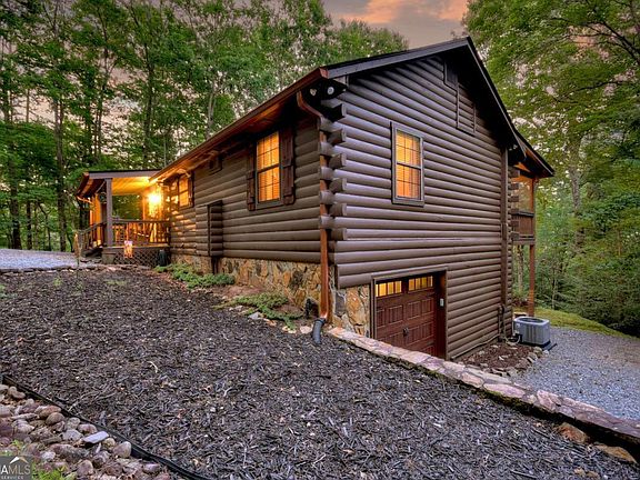 Yes, you can have it all! Welcome to 97 Doyle Carder Parkway, a rustic cabin bungalow in the heart of Cherry Log with beautiful mountain and forest views. This charming retreat features three bedrooms, two bathrooms, a large living room with a stone fireplace and walls of glass, a gourmet kitchen with stainless steel appliances and stone countertops, and a full dining room -- perfect for comfortable living and effortless entertaining. Covered decks overlook the treetops, mountain vistas, and a peaceful koi pond, while the terrace level offers a full den and an attached single-car garage. Recently updated with a new roof and new HVAC, the home is walking distance to the Benton Mackaye Trail, community lakes, and Rock Creek. An ideal full-time residence, STR investment, or second home getaway in one of North Georgia's most beloved communities.