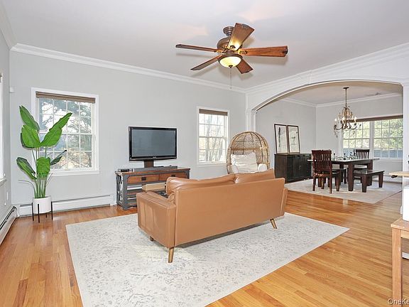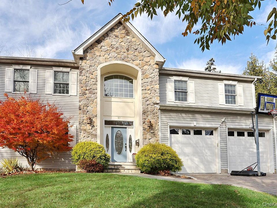 Welcome to this inviting 4-bedroom, 2.5-bath Center Hall Colonial, offering elegance, comfort, and modern conveniences throughout. A two-story entrance foyer with a stunning chandelier sets the tone as you enter this warm and inviting home. The spacious living room is framed by an arched doorway, leading to a formal dining room ideal for gatherings. The bright, modern kitchen features granite countertops, black stainless steel Samsung appliances, a reverse-osmosis water filtration system, a touch-activated faucet, and a large island with storage. A walk-in pantry plus an additional closet provide exceptional storage space. Sliding doors with a lovely transom window open to a paver patio equipped with a gas line for grilling, overlooking a fully fenced yard with a firepit. The kitchen flows seamlessly into the family room, highlighted by an automatic climate-control gas fireplace surrounded by shiplap and custom built-in cabinetry. Hardwood floors run throughout the home, enhancing its timeless appeal. Upstairs are four generously sized bedrooms with custom closet systems. The luxurious primary suite has tray ceilings, a walk-in closet, and a spacious ensuite bath featuring double sinks, a sunken tub, and a separate shower. A second full bath serves the remaining bedrooms. The second-floor laundry room with cabinetry and countertop adds everyday convenience. A full unfinished walkout basement with steel beam construction, high ceilings, and natural light from two windows offers outstanding potential for customization. A two-car garage features an electric vehicle charging station, built-in shelves and bike racks. All rooms are equipped with remote-controlled Casablanca fans. Additional upgrades and amenities include full home generator, central vacuum system, new Weil-McLain boiler installed in February 2025 with five heating zones, two-zone central air conditioning system, sprinkler system, and a full alarm system with motion sensors. Ideally positioned just a few blocks from Pearl River’s vibrant town center, the home provides convenient access to dining, shopping, and community amenities. It borders Cherry Brook Park, offering playgrounds and tennis courts. Proximity to NJ Transit adds transportation convenience, and the property is located within the sought-after Pearl River School District.