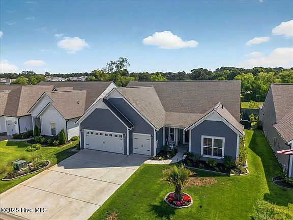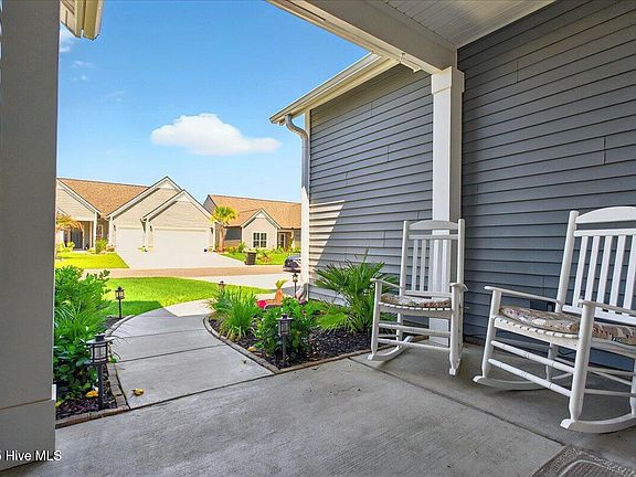 Inside, this beautifully maintained home with an open concept, the gourmet kitchen boasts soft-close cabinets, a beverage center, under-cabinet lighting, and crown molding that continues through the entryway and gathering room. A shiplap accent wall adds warmth to the gathering room and under the kitchen island. All recessed lighting has been upgraded to LED, and there are ceiling fans in every room. The home is equipped with instant hot water and sensor lighting in the pantry, laundry room, and hall closet. Additional storage includes pull-down attic access in both the garage and the primary bedroom closet, plus overhead garage storage racks. The home features a two-car garage plus a separate golf cart garage, offering plenty of space for vehicles and storage. The property is also equipped with a CPI security system with doorbell, backyard, and driveway cameras, full-yard irrigation, and professional landscape lighting in the front, back, and side yards. The home has never had pets or smoking. This home comes with seven years remaining on the original warranty. With several golf courses within a 10-mile radius and the beaches, shopping, and dining of both Myrtle Beach, Sunset Beach, Ocean Isle Beach, and Wilmington close by.