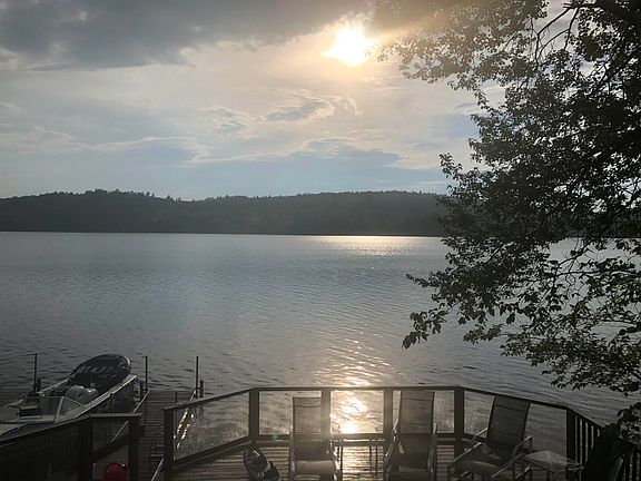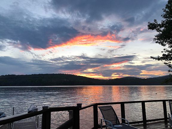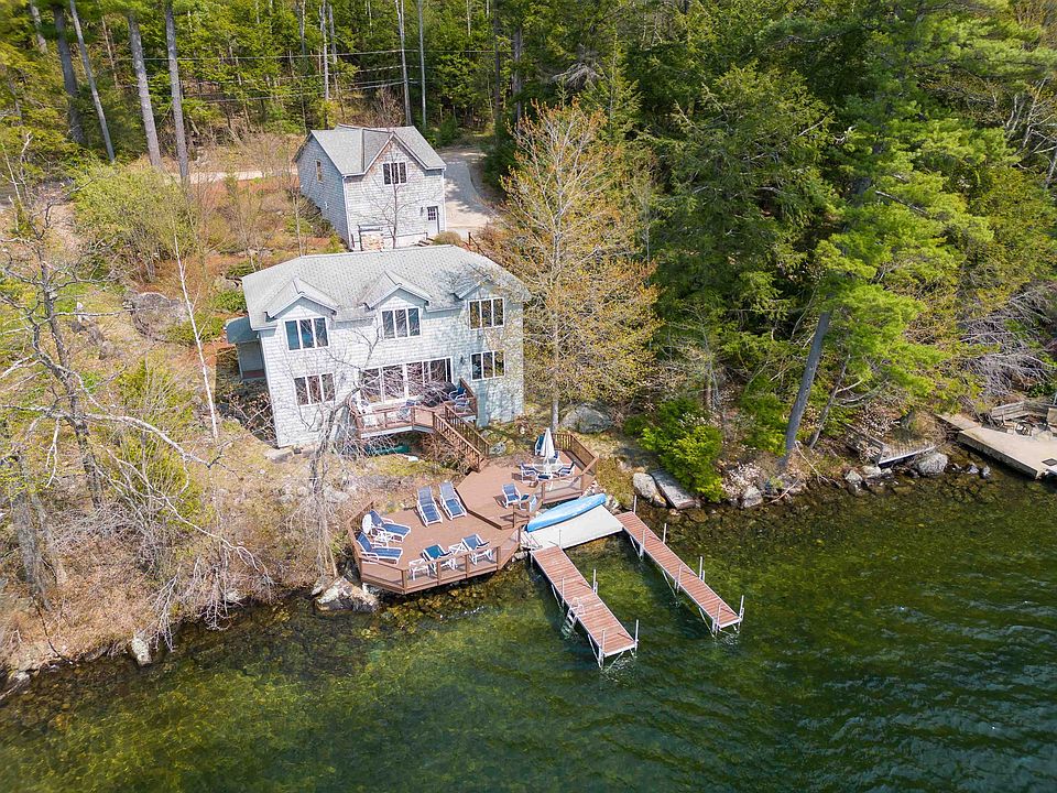 Once in a lifetime opportunity! Custom, year-round home directly on Silver Lake! One of the cleanest, most desirable deep water lakes in NH! Beautifully crafted home with unobstructed views over the water from every room in the house. Facing West, with perfect afternoon light and the most surreal sunsets. 1st floor features expansive open concept design with stone hearth with wood fireplace in living room, large dining area, and generous sized eat in kitchen with breakfast bar, all sourrounded with glass and sliders facing the lake and leading out to the multi tier deck directly on the water. 1st floor full bath and laundry room plus utility room and large storage closet. Upstairs you will find a large landing/sitting area, the primary suite with walk in shower, soaking tub and unbelievable view over the lake. 2 more generous sized bedrooms up. One with double sets of bunkbeds and the other tastefully decorated and both overlooking the lake. 2nd bath up. The beautiful classic stone hearth, and a couple of the origional entry doors from the previous cottage were used in the complete redesigned and rebuild in 1998. Detached oversized heated garage with a 2 car bay on the driveway side, tons of enclosed storage and a fully finished upper level, 1/4 bath and with drive in access at ground level from the road side of the garage. Country lakefront living at it's finest. With heated driveway for easy access, truely a year round retreat like no other!