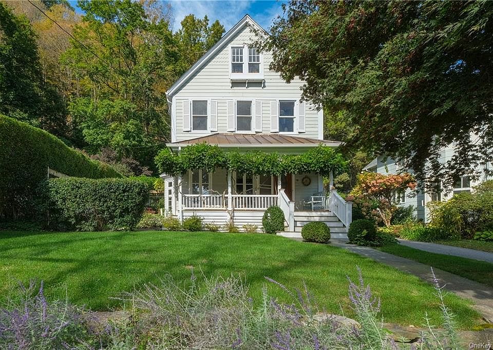 Experience the charm and ease of living in the heart of the vibrant hamlet of Katonah in this captivating Victorian. The perfect combination of a quiet tree lined neighborhood and walking distance to shopping, dining, train & town recreation. The rocking chair front porch is a gracious entry into the home which features high ceilings, architectural details, wood flooring, large rooms with oversize windows and French doors. Great entertaining flow indoors and out with the open floor plan to a magnificent outdoor area including stone veranda with wisteria vined pergola, koi pond water garden, terraced garden with mature trees and complete privacy in backyard. Kitchen and baths have elegant marble finishes and high end appliances. A 415 sq foot private home office/guest suite with its own half bath above the one car garage is the bonus. This coveted in-town gem offers the perfect blend of modern convenience and renovations while preserving classic Victorian period details.