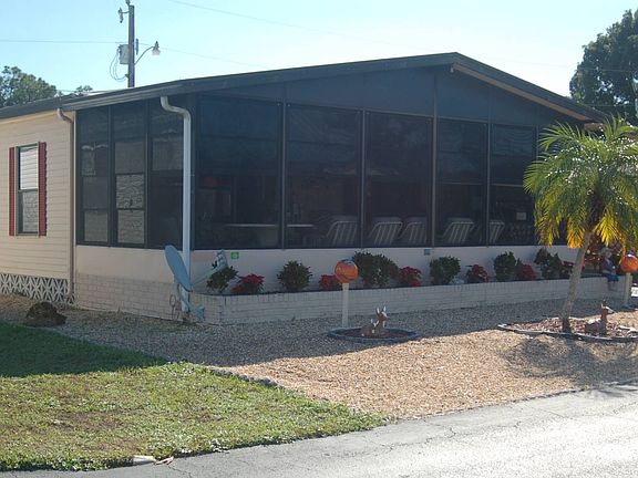 Your wait is OVER....pack your suitcase and move right in - OR - it may be purchased unfurnished! This meticulously maintained home reflects pride of ownership and is ready for new owners. The first thing you'll notice is how the exterior has been lovingly cared for with beautiful landscaping and NO grass to cut! Step inside from the extended 3 car carport and be amazed at the size of the screened lanai that runs the full width of the home. The lanai is perfect for enjoying the gulf breezes, lounging with a good book, or use this space for overflow when you open the area to the HUGE living/dining rooms. With over 1300 square feet, there is more than ample room for entertaining! The soaring vaulted ceilings throughout compliment the open and airy feel of this special home. Open to the kitchen and living room is a gracious dining area that will accommodate a very large dinner party and boasts a built-in china cabinet and gorgeous crystal chandelier. You will enjoy cooking in the well equipped spacious kitchen that provides ample cabinetry and counter space, pantry and attached breakfast bar. The interior laundry/mudroom is conveniently located off the hallway leading to the bedrooms and has an access door to the carport. As a bonus to you - the washer and dryer are in place, ready for the first load. Be prepared because you will marvel at the abundance of storage the laundry room/mudroom provide! The guest bedroom, located just across the hall from the second bathroom is generous in size and beautifully furnished. Your guests will appreciate the spacious 2nd bathroom with tub/shower combo with sliding glass doors. At the end of the hallway you will find the master bedroom and en-suite that run the full width of the home. The bedroom is light and bright, has a generous size walk-in closet, and just steps from the master bath. The master bath has a garden tub AND walk-in shower. With all this area has to offer you don't want to miss this exceptional opportunity! Serendipity is an active 55+ manufactured home community with resort-style amenities - heated pool, hot tub/spa, fitness room, tennis, community library, dog park and spacious home sites. The 4,400 square foot clubhouse is always abuzz with dinners, dances, bingo, card games, etc. Your choice, just relax or participate in a wide variety of activities - all for a very low monthly lot lease of $585. Convenient to Fort Myers, "The City of Palms", you are just minutes away from restaurants, shopping, golf courses, medical facilities, the Caloosahatchee River, Ft. Myers Beach, Sanibel Island, Thomas Edison and Henry Ford winter estates/museums, and various cultural, ecological and historical attractions. Schedule an appointment today!