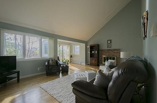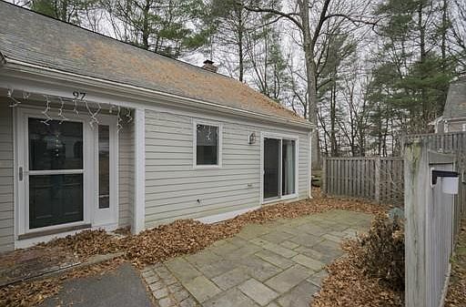 Carefree condo living awaits you in this light-filled 2 BR 2 BA home in popular Drummer Boy community. From its open floor plan to its expansive living room with vaulted ceiling to its large windows overlooking conservation land you know you are in a home of quality and comfort. Large foyer opens to large living room with vaulted ceiling, brick-faced fireplace, sliding door to the backyard w/views of conservation land. Open to dining room w/ window seat and sliding door to paved patio. The efficient galley kitchen has birch wood cabinets, granite counters and a tiled backsplash. The master bedroom has a ceiling fan, overlooks the backyard and views. The master bathroom is fully updated with a white cabinet and granite counters. The 2nd BR is light-filled and large. Updated full family bathroom, in-unit laundry, central air and pull down attic. Swimming pool, tennis court and all maintenance means you can just enjoy! Close to shopping, Route 95, new Estabrook ES.
