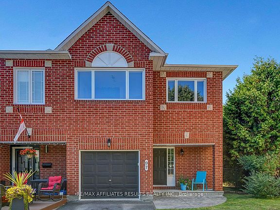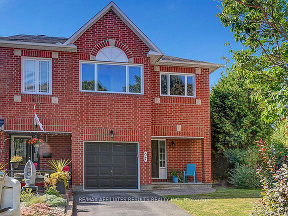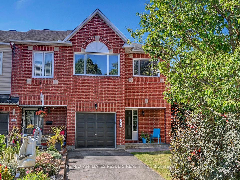 THE RAREST OF RARE! 4 BEDROOMS UP PLUS A HUGE YARD WITH A GORGEOUS INGROUND POOL! You just have to come see 97 Flowertree Crescent, a spacious end-unit townhome in sought-after Bridlewood, Kanata. Perfectly designed for both everyday living and entertaining, this 4-bedroom, 2.5-bath home offers plenty of space inside and out. Step inside to a bright, open living room and a formal dining room for gatherings. The updated kitchen impresses with granite countertops, stainless steel appliances, white shaker cabinetry, subway tile backsplash, and functional touches like pots-and-pans drawers and abundant counter space. Enjoy casual meals in the eat-in kitchen, where sliding doors open directly onto the deck. The backyard is a private oasis, ideal for summer living, with a gazebo for shade and a patio surrounding the separately fenced in-ground pool. With summers getting hotter every year just imagine jumping in to cool down. Upstairs, the primary suite features laminate flooring, a walk-in closet, and a 4-piece ensuite with a luxurious soaker tub and separate shower. Three additional bedrooms share a well-appointed full bathroom with great vanity storage. The finished basement extends your living space with a cozy gas fireplace in the rec room and plenty of storage in the utility room. This home also includes a convenient powder room on the main level and an attached garage. NOTE: ROOM FOR 3 CARS IN YOUR PRIVATE DRIVEWAY! Located close to parks, schools, shopping, and transit, with quick access to Highways 417 and 416, it balances suburban comfort with everyday convenience. Don't miss your chance to make this Bridlewood gem your own. Schedule a showing today and experience the fantastic lifestyle 97 Flowertree Crescent has to offer! Updates include: Shingles 2011 (25 yr), Pool 2011, pool heater 2016, pool filter 2022, pool pump 2024, Kitchen 2021, dishwasher 2021, stove 2022, Windows 2021.