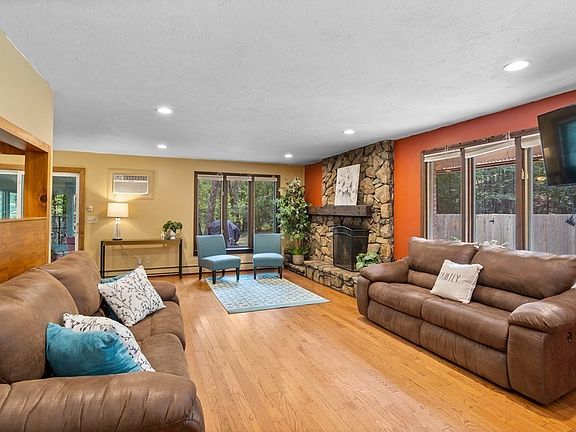 Live within nature in this contemporary style home sited on 7+ acres of uplands w/ a fully fenced in yard & walking trails, that served as a carriage road in the 1800's! Featuring an open concept floor plan w/ a large living room, recessed lights, hardwood floors, field stone fireplace, & many windows allowing an abundance of natural light. The one of a kind red cedar kitchen has stainless steel appliances & steps into the dining area with custom built in shelving. Magnificent screen porch w/ a raised cedar ceiling will be an irresistible setting to bring serenity back to your life! Two generously size bedrooms, a full bath w/ double vanity sinks, granite counter tops, and a jacuzzi tub complete the first floor. In the lower level you will find a family room w/pellet stove & storage closets, full bath with laundry, & 24 x22 garage! Most major components replaced in past 11 years including the roof, Buderus Furnace, 2 ductless mini splits, driveway, D-Box for septic system, & more!
