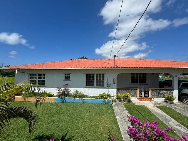 Looking for a comfortable home that offers stability, personal space, and the pride of ownership? 97 Humbug might be just what you're seeking. This spacious -3-bedroom, 2-bath home is perfect for anyone who values privacy and convenience. The property features a gated yard, carport, and an abundance of fruit trees, including avocado, papaya, banana, soursop, and golden apple and with utility costs averaging $250 monthly.Located just about ten minutes from the main road where Sunny Isles Shopping Center, the highway to the airport, and the west side of the island, this home is in a prime location, close to the hospital and other essential services. The house itself is well-lit, breezy, and sits at the end of a quiet block in a great neighborhood. Inside, the primary bedroom boasts an en suite bathroom, with two additional spacious bedrooms. There's also a bonus room off one of the bedrooms that's perfect for an office or hobby space. The home has two inviting common rooms, a laundry room, and a bonus room off the carport, providing extra storage or flexible use space. The automatic front gate (with maintenance and updates) offers convenience, while the enclosed back porch is generator-ready for added peace of mind.