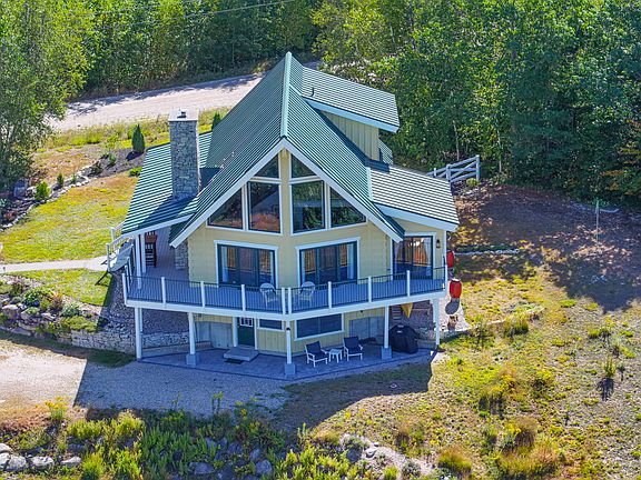 Rare opportunity to own a Contemporary Rocky Mountain Log Home with sweeping mountain views and a lot in Knights Hill Association with shared waterfront on Moose Pond!! Discover the ultimate retreat where the rugged beauty of a log home meets contemporary luxury. Nestled on 4.11 acres of land, the exceptional property offers a lifestyle defined by breathtaking, panoramic mountain views that stretch as far as the eye can see. This isn't just a home; it's a front-row seat to nature's most spectacular show changing with every season. Step inside an inviting open concept living room with cathedral ceilings, large windows facing the mountains, and stone chimney. Enjoy morning coffee sunrises or evening sunsets in the sunporch or wrap around deck. There is even a outdoor fireplace for outdoor entertaining. Multiple heat sources to keep you warm in the winter and central air to keep you cool in the summer. Home also has a generator hookup. The detached 30 x 50 garage is a delight to be seen, with additional storage above and heated, it is great for storing, boats, kayaks, and more! Space above could make a great area for a great room or exercise room. Approximately 2 acres is covered with electric fencing for pets which will convey. A short drive to Knights Hill amenities where you will find an additional lot to convey with this property. Bring your visions to build on the .61 acre lot on W Pondicherry Rd for rental income or build a retreat to call your own. Outdoor enthusiasts dream with hiking, biking, skiing, swimming, sightseeing, kayaking, boating and more all at your fingertips with this property! 15 minutes to downtown Bridgton, 15 minutes to Lovell area lakes & mountains, 35 minutes to North Conway attractions. Come make 97 Kezar Heights your home!