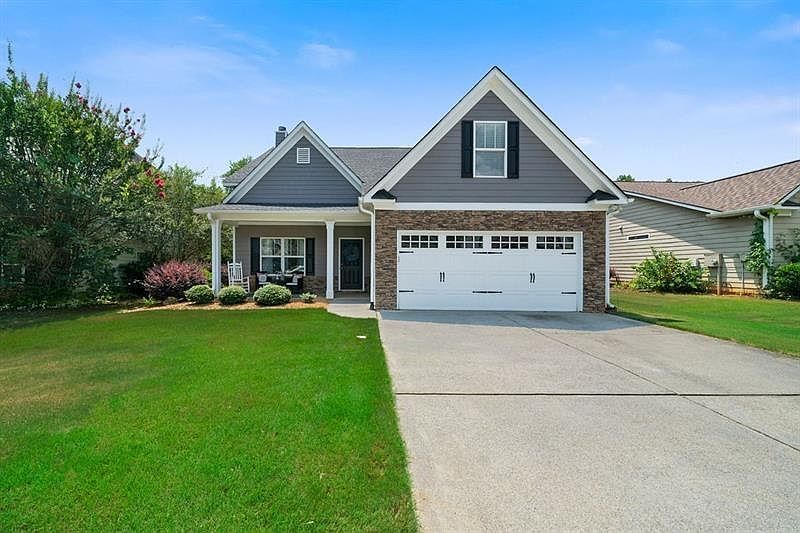 Beautifully maintained 4-bedroom, 2.5-bath home in the popular Wingfoot Park neighborhood! From the moment you step inside, you're greeted by hardwood floors that flow seamlessly throughout the entire home—upstairs and down—adding warmth, character, and style to every space. The open-concept layout begins with a dramatic two-story great room, filled with natural light and anchored by a cozy stone fireplace that instantly makes you feel at home. From there, the space flows effortlessly into the bright, spacious kitchen, featuring a breakfast bar, stainless appliances, ample countertops, and plenty of cabinetry. The kitchen overlooks both the great room and dining area—perfect for entertaining or staying connected with family. Just off the main living area is the private primary suite, offering a peaceful retreat with a luxurious en-suite bath. A convenient laundry/mudroom on the main level helps keep everything organized and within easy reach. Upstairs, you’ll find three generously sized bedrooms, all with hardwood floors and excellent closet space. Two of the bedrooms share a Jack-and-Jill bathroom, while the oversized fourth bedroom offers flexible space for a guest room, playroom, home office, or gym. Step outside to a large, level, fenced-in backyard—perfect for outdoor gatherings. You're also just a short walk to the neighborhood pool and playground, and right across from a park and ballfields, offering endless options for recreation. Conveniently located just minutes from downtown Cartersville, major highways, top-rated schools, and shopping, this home truly has it all—style, space, and a location you’ll love.