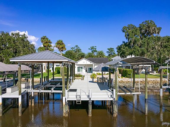 This property has a large master bedroom with a large master bathroom, newly remodeled Two full bathrooms and a half bathroom This property has a detached three car garage Two boat lifts magnificent views Electric gates for the entrance 1 acre lot Owners pays for lawn service and lawn pest control Property has well and septic so there are not any city fees for water or sewer