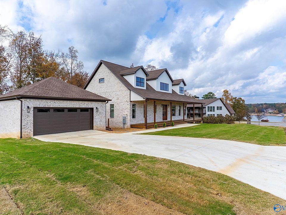 "New" Full Brick Home with/ Vinyl Dormers. Gorgeous view of Smith Lake. Gated Community. Front porch wraps around 3 sides (front,1side & rear). 2 story 5 Bedrooms 3 Baths/ open floor plan. Family room upstairs 18x26 overlooks Kitchen & Dining room downstairs. Living Room w/electric fireplace, ceiling fan & 10' ceilings. 20' Ceilings in kitchen & dining room. LargeGarage 25x25 w/18' door. 2-50 gallon high-efficiency heat pump water heaters. Community Amenities has boat ramp, free boat storage area, & docks. Pickleball Rec area! Amazing Home!