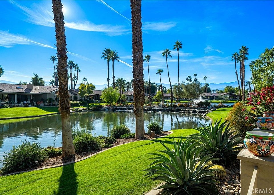 But the true showstopper is the expanded, south-facing patio. Positioned along a serene lake and waterfall with dramatic Santa Rosa Mountain views, this outdoor oasis offers unforgettable sunsets and endless opportunities for relaxation or al fresco dining. A built-in grill adds to the convenience, making this space as practical as it is breathtaking.