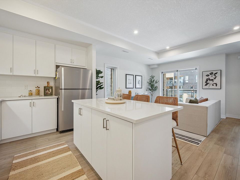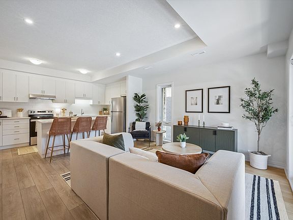 Discover the charm and tranquility of The Emerald (Front Upper Level), a Stacked Townhome in Trussler West that provides all the essentials. This charming layout features an open-concept space, combining the kitchen and great room for easy living and entertaining. Enjoy your mornings on the front porch, perfect for a quiet coffee break. The principal bedroom offers an ensuite and a walk-in closet, creating a relaxing retreat. A second bedroom and a main bathroom complete this thoughtfully designed home. This unit includes: