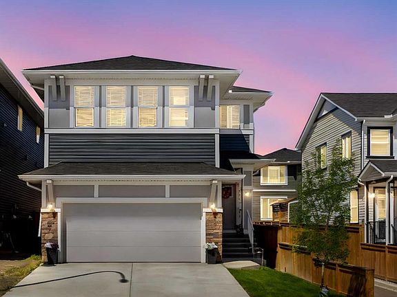 *Separate Side Entrance* Main Floor Bedroom & Full Bath* Spice Kitchen* 4 Bedrooms Upstairs* Playground Across the Street!* Welcome to 97 Amblehurst Gardens NW — a large, modern, 2024 built family home that offers exceptional value in the NW community of Ambleton/Moraine. With over 2,700 square feet of finished living space above grade, plus a 1,052 sq ft unfinished basement full of potential, this home offers the kind of space, features, and flexibility rarely found at this price point. A newly installed city-permitted side entrance gives way to additional possibilities for this already incredible home. From the moment you arrive, you’ll notice the home is ideally located across from a beautiful playground, with easy access to parks, ponds, walking trails, schools, and retail amenities. Step inside to a bright and welcoming foyer with a large front closet and an airy layout that balances comfort and elegance. To your left, a cozy den provides the perfect space for a home office or reading nook. To your right, a main-floor bedroom and full 3-piece bath offer a rare and practical setup for multi-generational living or guests. The heart of the home is the stunning open-concept kitchen and living area. The kitchen features modern two-tone cabinetry in elegant blue and grey, sleek stainless steel appliances, a gas stove, and hood fan. For serious cooks or anyone who loves to entertain, the fully equipped Spice Kitchen—with its own gas cooktop, sink, window, and extra storage—is a game-changer. A dining space flows seamlessly into the spacious living room, where a gas fireplace adds warmth and character. Upstairs, nearly 1,550 square feet of beautifully designed space awaits, including a large bonus room perfect for movie nights or a kids’ hangout. Four spacious bedrooms offer ultimate comfort and flexibility, including not one but TWO primary suites. The main primary suite is a luxurious retreat with an oversized bedroom, spa-inspired en-suite with dual sinks, a deep soaker tub, walk-in shower, and private water closet. Best of all, the walk-in closet connects directly to the laundry room for unbeatable convenience. The second upstairs suite features its own private bathroom and walk-in closet—ideal for teens, extended family, or guests—while the two remaining bedrooms share a well-appointed hallway bath. The basement is wide open and ready for your vision. With a city-permitted side entrance recently installed, the new owners can choose to keep the space for themselves or explore other potential uses for the space. And with the double attached garage, dual furnaces, central air conditioning, and the peace of mind of still being covered under the Alberta New Home Warranty coverage, you’re getting comfort, quality, and value all in one package. This is your chance to get into a home that checks all the boxes at an amazing price and a rare opportunity to secure a nearly new, feature-rich property in a growing, family-friendly neighbourhood. Book your showing today!