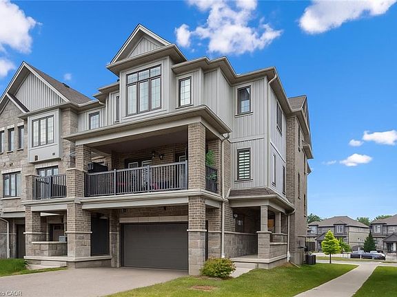 Executive End-Unit Townhome in Sought-After Neighbourhood Welcome to this beautifully upgraded and tastefully decorated executive end-unit townhome, offering the perfect blend of style, comfort, and convenience. Featuring a 2-car garage with direct home access, plus driveway parking and a private street-facing entrance, this home combines functionality with curb appeal. Step upstairs into an impressive open-concept living space, highlighted by a bright, spacious kitchen, elegant dining area, and two sets of double French doors that lead to a private balcony—ideal for seamless indoor-outdoor entertaining. Less than 10 years old and meticulously maintained, this home is located in a highly desirable community, just minutes from Highway 401, Conestoga College, scenic parks, walking trails, and top-rated schools. Enjoy the benefits of low condo fees that cover exterior maintenance—perfect for investors, students, first-time buyers, or snowbirds seeking worry-free living. Move-in ready and loaded with upgrades, this stylish townhome offers executive living with low maintenance. Don’t miss your opportunity to call this gem your own!