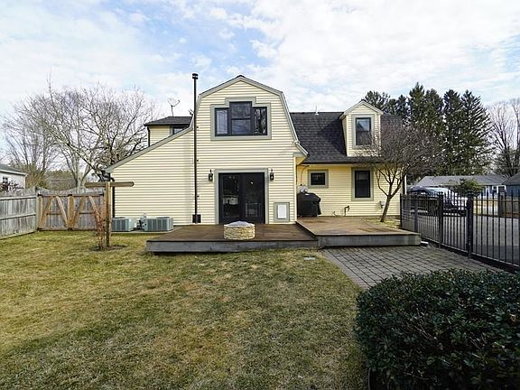 Welcome Home to this one of a kind Gambrel Colonial with an open floor plan that's perfect for entertaining. Set the ambiance with a gas log fireplace in the LR. Antique style natural wood cabinets mixed w/top of the line appliances, a farmers sink, and central granite top island in the kitchen. A breakfast bar steps down to an eat-in area w/a cozy pellet stove and French doors leading to a custom designed deck. An office or small bedroom, plus a full bathroom round out the first floor. 2nd flr has a large Master bdrm w/walk in closet, a 2nd bdrm w/cl, and laundry room. The full bathroom is beautifully customized w/built in counters/make up area, a tiled Jetted tub, and oversized steam shower. Oversized 2 car garage has a finished heated bonus room above w/central air and recessed lighting for a fun entertainment space. Fenced in yard w/front and rear yard irrigation system. Roof, siding, and Anderson windows new in 2015.Please submit all offers by 5:00 pm March 10th.