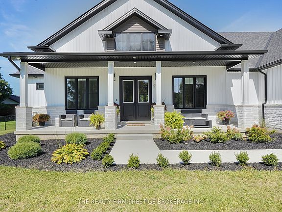 Welcome to this stunning 3+1-bedroom, 5-bathroom custom-built bungalow, perfectly situated in a peaceful country setting just minutes from all amenities. Built with quality craftsmanship and attention to detail, this newly constructed home offers over 3,000 sq ft of finished living space designed for modern living and effortless entertaining. Step inside to find a spacious open-concept layout with high-end finishes throughout. The gourmet kitchen boasts top-of-the-line appliances, custom cabinetry, a large island, and walk-in pantry. The cozy living area features a gas fireplace and seamless access to the backyard ideal for indoor-outdoor living. Each bedroom is generously sized, including a luxurious primary suite with a spa-like ensuite and walk-in closet. The finished basement offers additional living space, a full bathroom, and ample storage rooms perfect for a home gym, media room, or extended family stays. Outside, enjoy the fully fenced, flat backyard with plenty of room for kids, pets, or future landscaping dreams. The oversized 3-car garage and extra-wide driveway provide plenty of space for vehicles, toys, or a workshop. Whether you're looking for peaceful country living or easy access to schools, shopping, and highways, this home offers the best of both worlds. Book your Private Showing today!!