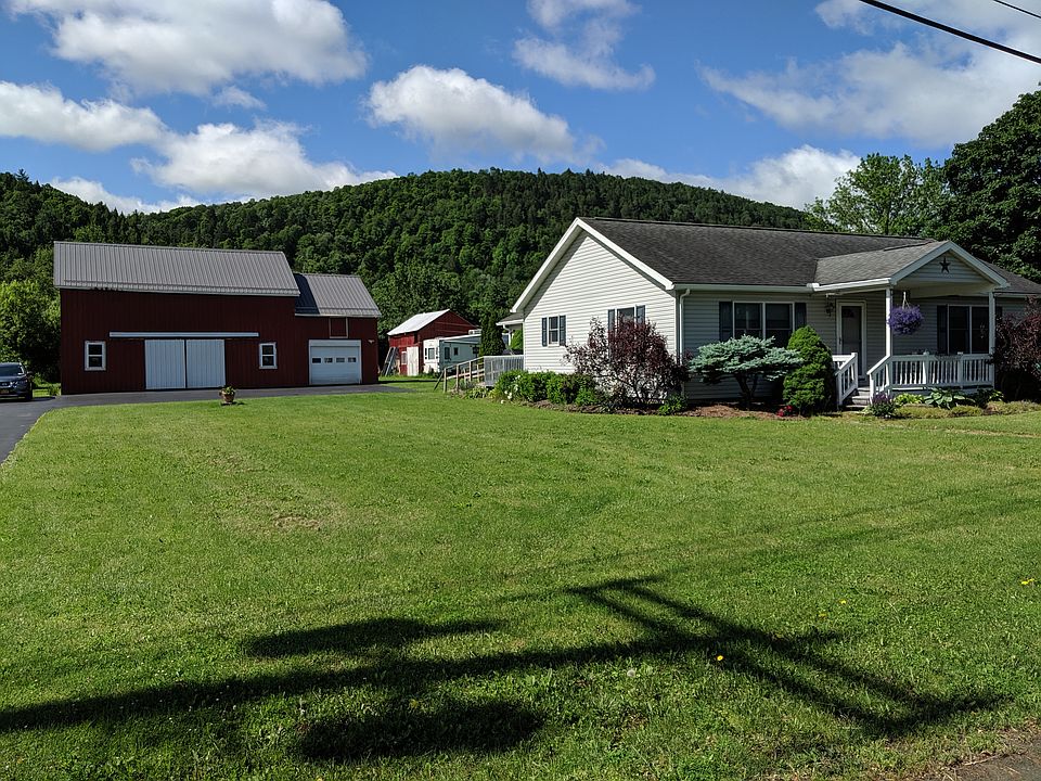 Will cooperate with buyers agents/pay commission. Don't miss out on this 2 bed, 2 bath Candor home. Features include central AC, a full basement with radiant heated floors, large paved driveway, 2 barns and a detached garage (recently added on to main barn). The eat in kitchen and additional dining space by the living room makes this home perfect for entertaining. There are two living areas in this home- one of which could easily be converted to a 3rd bedroom. For more information call: 607-659-7447 Sq ft and lot size are estimates.