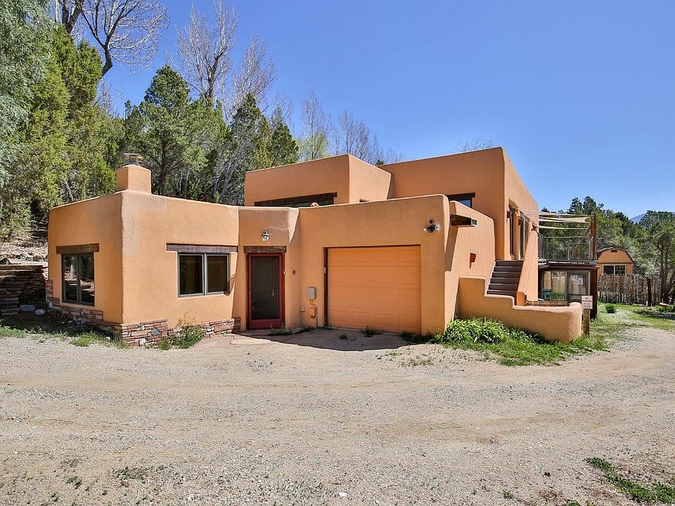 GOODBYE WORLD - HELLO MOTHER NATURE. Whether a sweet retreat or permanent home, this 3,195 sq. ft home and guest quarters/mother-in-law space on 1 acre in the trees provides privacy and quiet and the deck provides ample space for enjoying siestas, sunsets, or solitude while enjoying mountain and Hondo Valley views. Lots of windows make the outdoors ever present. The main house has 2BR plus an office, 2 1/2 baths, and a 1 car finished garage. The guest suite downstairs, which the owners have used for short term rentals, has 1 BR/1BA plus a sleeping nook, kitchen, and large greenhouse. Big family or big family of friends? Hobbies? Home occupation? There's lots of space and options. Upstairs, the living areas are open yet defined with lots of Southwest touches and wood plank floors. Once an artist's home, there's space for displaying sculpture, pottery, and art. The finished garage has workshop space. Love the great outdoors? skiing/boarding at Taos Ski Valley, hiking in the Nat'l forest, fishing or rafting on the Rio, and hunting are all just minutes away. Indoor activities like shopping, gallery hopping, or lunching more your style? Colorful Taos is just 15 minutes away.