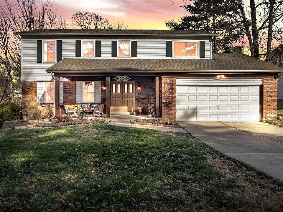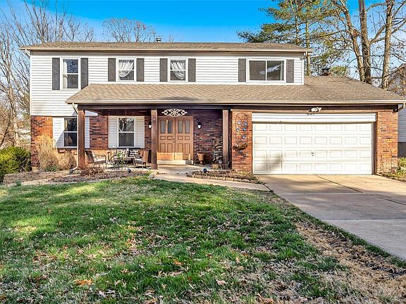 Prepare for your best summer yet with a large inground pool and a perfect backyard for entertainment. This spacious 4 bedroom, 2 1/2 bath two-story home provides not only comfort living, but is located in the prime city of Ellisville. The main floor offers an open floor plan, including bonus family room, brick wood burning fireplace and total window view of outdoor pool. Updated bathrooms, full covered front porch and studded walk out basement to add your own personal touch. Situated and conveniently located near shopping, backs up to a beautiful private wooded area.