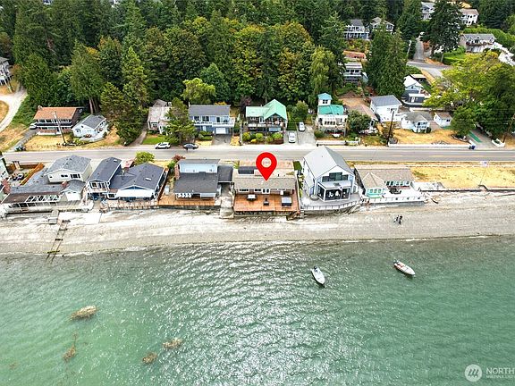 STUNNING SOUND VIEWS and BREATHTAKING SUNSETS over the water. PRIME NO-BANK WATERFRONT home on highly sought-after Utsalady Bay. This charming 2-bedrooms, 1-bathroom home with an office/bonus room—ideal for remote work or guest overflow. Situated on a generous 13,981 SF lot, the home was completely upgraded with elegant finishes throughout: new kitchen, bath, windows, siding, plumbing, electrical, insulation, and more. Step outside to your expansive 1,200 SF colored stamp concrete deck, designed for luxury coastal living— featuring 8-person spa, gas stub for BBQ and fireplace, and plenty of space to relax and entertain. A rare opportunity to own a slice of waterfront paradise where comfort and coastal beauty meet.