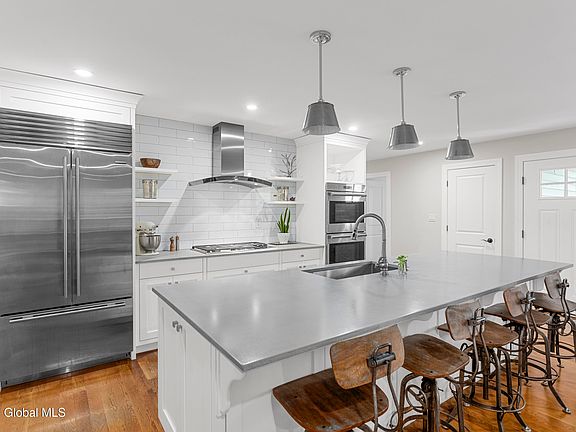Multiple Offer Deadline 6/16 @ 7 PM. Thoughtfully rebuilt from the studs out w/luxurious, low-maintenance living in mind! This like-new home offers peace of mind w/all new plumbing, HVAC, roof & insulation. The open-floor plan & gourmet kitchen are perfect for entertaining, featuring Sub-Zero & Wolf appliances, an oversized island w/concrete countertops, double ovens, & custom cabinetry. High end finishes throughout: beautiful wood floors, custom interior wood shutters, gas fireplace, spa-like primary suite w/walk-in closet, tiled bath, and a Roman shower add comfort & elegance. California Closets systems provide easy organization. Enjoy the rare half-acre village lot & unwind on the screened porch. Single-level living, smart upgrades & feels brand new. Walk to Front Street.