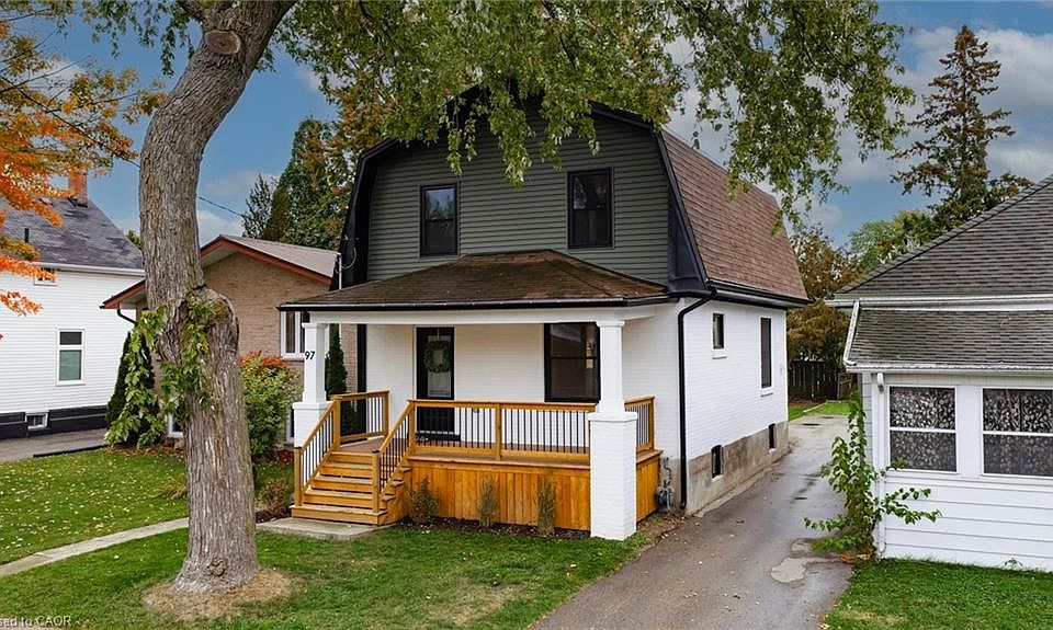 This isn’t just a renovation, it’s a rebirth. Taken down to the studs and rebuilt with precision, quality and care. Behind its charming exterior lies a brand new home with new electrical, plumbing, spray foam insulation, HVAC, drywall, windows, doors, flooring, kitchen, bathrooms, lighting, and more. Nothing was overlooked. Every system, surface, and finish is new and built to today’s standards, offering all the character of an older home with the reliability of new construction. Step into the bright, welcoming foyer with built-in bench seating, opening to a spacious living room featuring a new fireplace and windows that flood the space with natural light. The new kitchen is the heart of the home, with quartz countertops, custom cabinetry, and stainless steel appliances, designed for both function and beauty, with a door leading out back to your new private deck. Enjoy modern conveniences like main floor laundry and powder room, perfect for busy family life. Outside, the transformation continues with an updated exterior, new back deck, and curb appeal that stops you in your tracks. The front porch will be the perfect spot to start your day, with a coffee in hand, curled up on a cozy lounge set, listening to the peaceful surroundings. End your day here as well with a glass of wine, curled up with a blanket and a book. Now let's talk about the setting — Stratford, a town known for its artistic soul and vibrant lifestyle. Stroll downtown to explore boutiques, cafés, galleries, and award-winning restaurants, or take in a world-class performance at the Stratford Festival. With beautiful parks, riverside trails, and a creative energy that fills the air, Stratford offers a lifestyle that’s as inspiring as it is welcoming. This home isn’t just renovated — it’s rebuilt, reimagined, and ready for its next chapter in one of Ontario’s most beautiful, culture-rich towns. Book your showing today.