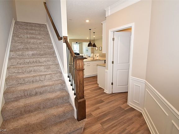 Welcome home to this beautiful townhome at Renaissance Park at Geauga Lake. Kitchen includes upgraded cabinetry and appliances and large island with granite countertops. Other upgrades include wainscoting, crown molding, rod iron spindles on the banister, lighting, ceiling fans and LVT flooring. Window treatments have been added throughout. Laundry room is conveniently located on the second floor. Primary bedroom features extra large walk-in closet. 1st floor also has a bump out beyond the dining room that can be an office area or sunroom. Another upgrade is that the home is Smart wired for enhanced wifi capabilities, security system and sound. Close proximity to restaurants, stores and other local attractions. This home is a must see!