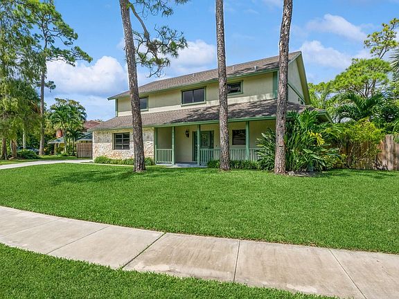 Home is where the Heart is & where all the family will live comfortably! Welcome to this 5BR/2.5BA/2CG CBS two-level Victorian-style home in Wellington, in a great school district! This charming home has exterior stone accents, a wrap-around porch & is located on a fully irrigated lge .29 acre corner fenced lot w/ no HOA. Through the porch & front door w/ glass inserts, you get a glimpse of the backyard's beauty. The interior of the home has an open floor plan, allowing for a seamless flow between the living & dining areas, which have crown molding. Downstairs is 1 BR, 1/2 bath & the kitchen, which is equipped w/ ample counter & cabinetry space, hardwood floors, granite c-tops, tile backsplash & new black SS appliances. Upstairs are the remaining extra large BR's & 2 more bathrooms. You will be wowed by the size of the 2 secondary BR's! The 2nd bath is large with two sinks. The primary BR has a walk-in closet and a nicely renovated bathroom, which has a walk-in shower w/ marble bench & 4 shower heads. The back & side yards are gorgeous & offer a peaceful outdoor living space, w/ plenty of room to build your custom pool! There's a new impact resistant garage door & 2 HP irrigation pump. This well-maintained home has so much appeal and is a great place for family & friends to gather! Come see for yourself! Proximity to great schools, equestrian events, shopping, fine/casual dining & a wonderful place to spend the winters!