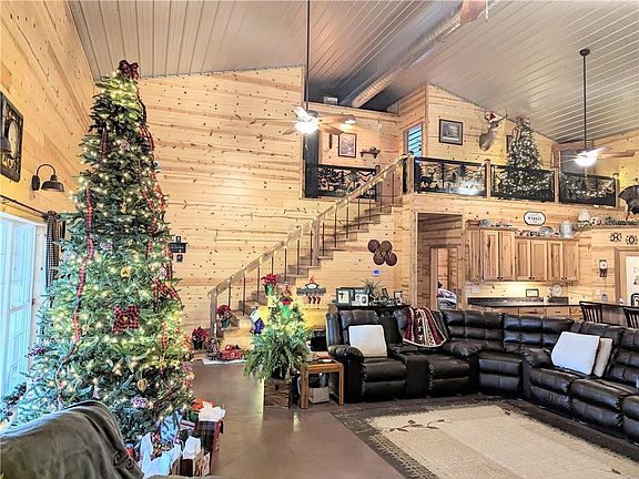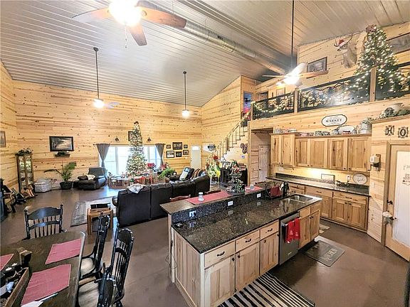 Just wow! From the location just outside of town with pond to the almost new home with an infinity in ground pool...this home is ready for your family! This 3 BR 2.5 BA "Barndominium" is posh from the cathedral ceiling w/ exposed ductwork, stained concrete floors, huge master suite and 2 car attached garage. The open floor plan starts the minute you walk in the front door with living room/fireplace, dining and kitchen in one HUGE area. The kitchen has a bar, custom Malek hickory cabinets with soft close and granite countertops. But wait! There's so much more... Over 6 acres with a stocked pond ready to catch catfish and bass. The shop-ohhhhh the shop! 48 x 80 with 14' sidewalls and 3-12'x12' doors has concrete floor, insulation, heat/air, hot water tank and a 3/4 bath. The owners actually lived there when building the house. The in ground infinity pool has "mood lighting" that sets an incredible ambiance for outdoor entertaining and accents well with the bar, television, firepit, and an abundance of stamped stained concrete for your outdoor seating. This incredible "hobby farm" won't last long, so schedule your showing fast! And don't forget, you aren't far away from Stockton Lake, Nature Conservancy, Schell Wildlife and Truman Reservoir.