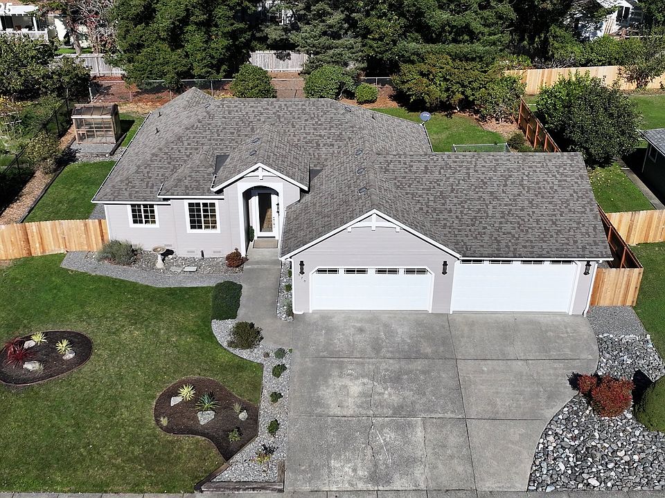 Newly Remodeled Home with a Rare 4-Car Garage! Single level, NO stairs!Beautifully updated 3-bedroom, 2-bath home on a generous 0.28-acre lot in the sought-after Clarion Glen subdivision. This home features a rare 4-car-deep, oversized garage, approx 1108 sq ft, with one bay featuring an 8-ft door and the other a 10-ft door that spans 32 feet deep, perfect for large vehicles, a boat, a small RV, toys, or a workshop. A covered entry with an 8-foot Privacy glass door.The gorgeous remodeled kitchen shines with high-end Ocean Fantasy quartzite slab countertops and backsplash, stainless steel appliances, a Thor gas cooktop, a breakfast bar, and an oversized walk-in pantry with double doors. A new pizza oven is included! Quartzite is a slab, more expensive than granite, and a luxury hard, solid-surface countertop. The living room features vaulted ceilings, a ceiling fan, and a gas fireplace with a matching quartzite surround and mantle, and plenty of natural light.The primary suite is spacious and elegant, offering a large walk-in closet, beautiful lighting, and an ensuite with dual sinks, striking mirrors, and a walk-in shower. High-end luxury vinyl plank flooring runs throughout the home. One bedroom has dual access (entry and hall), making it ideal for a home office or den.Outside, you’ll find a newly fenced yard, a greenhouse, and a large level lot with privacy separation between homes. HOA fees are only $243 annually and cover maintenance of the privacy path behind the fenced property. A fabulous covered patio, too! Located near local beaches, downtown, schools, and entertainment, this home offers both comfort and convenience. Tax records reflect a smaller square footage (Builder measures 1460). Buyers to do their own due diligence. Beautiful new landscaping! This home is move-in ready and beautifully updated. Ask to see the Matterport Professional 3D tour, which covers the inside and outside of the home, and also ask for the floor plan.