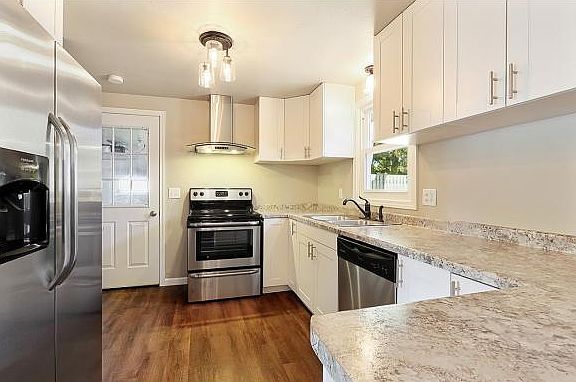 Completely renovated 3 BR 1 BA ranch home close to Lambeau Field! Features fully updated kitchen floors, self-closing cabinets, counter-tops, main bath w/ granite counter-tops. Updated windows, roof, siding, furnace, water heater, and A/C unit (2016). Recently poured driveway, full clean unfinished basement. Stainless steel appliances included.
