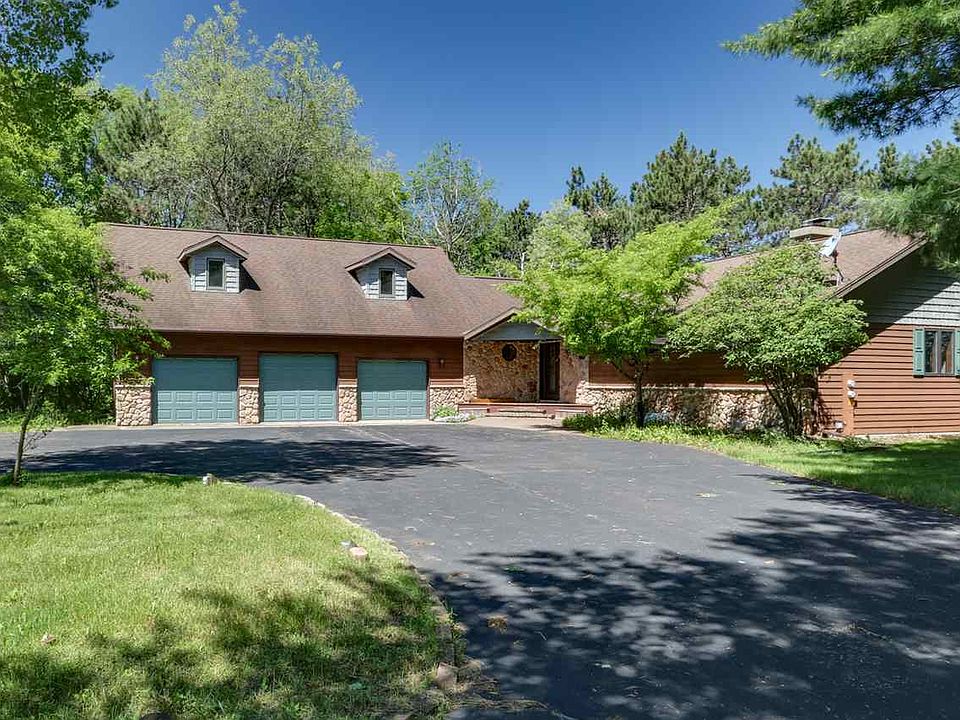 PARADISE FOUND on Onland Lake! This Chateau style home offers a year round retreat on a 48 Acre Glacial Lake with sandy beach on a 1.6 acre lot in the Town of New Hope. 3 Spacious Bedrooms, 2.5 Baths & over 3700 Sq Ft of Living and Entertaining Space! Amenities include Open Living Room with Gorgeous Views of Onland Lake, 4 Season Office/Den. Main Level Laundry/ Mud Room and Spacious Master Suite with Full Bath, Ample Storage.Double Sided Wood Burning Fireplace and Private Patio Door Entrance to the Wrap Around Deck. Attached 3 Car garage and 36 x 13 unfinished bonus storgae above garage. The Lower Level Features Two Spacious Bedrooms, Office/Den, Kitchenette/Bar & Family Room with efficient Energy King Wood Burning Fireplace boasting Walk Out Patio Access and additional Garage to Basement entry. Professionally Landscaped by Chuck Egle landscaping w/paver path accenting the yard. NEW since purchase Forced Air Furnace with NEW Central Air. New flooring, 6" drilled well, plumbing & electrical updates, Dual Radon Mitigations Systems & water softener. Preview this exceptional home today!