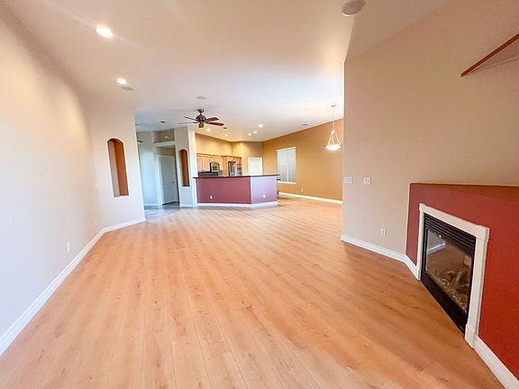 Enjoy a luxurious lifestyle in this gated community of Dorado subdivision home in Verde Santa Fe. This split floorplan features high ceilings, 2 bedrooms, 2 bathrooms, and two bonus rooms. Living room and bonus room flooring has NEW luxury vinyl plank. The covered back patio overlooks the 18th hole of the Highlands Agave golf course and offers views of Mingus Mountain. The home boasts carpet and tile throughout, a built-in gas fireplace in the living room, and a fully equipped kitchen with a large refrigerator, stove, microwave, dishwasher, ample cabinets, and an island. The master bedroom includes French doors, an ensuite bathroom with a dual vanity sink, a separate soaking tub and shower, and a walk-in closet. The second bedroom has direct access to the hall bathroom. Membership to the Verde Santa Fe clubhouse, gym, and pool is included, with key fobs purchased by the tenant at the clubhouse. The HOA is paid by the owner, and the property features washer/dryer hookups and a 2-car garage. This 55+ community welcomes all ages to rent. Pet negotiable.