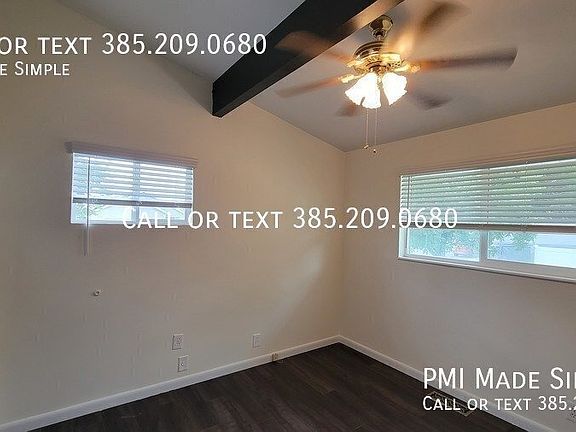 Beautifully updated single-level home on a corner lot in Orem. Large partially fenced yard with large back patio for entertaining. New dishwasher/sink combo, vaulted ceilings, and ceiling fan. LVP flooring throughout for easy cleaning. Well-behaved pets welcome upon approval!