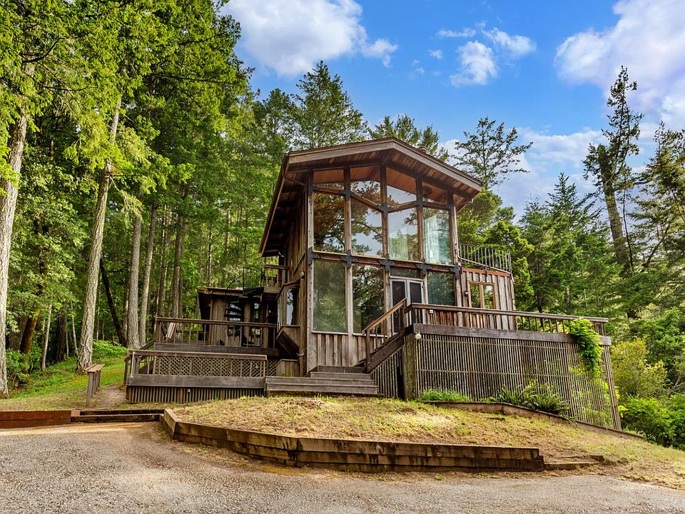 An immensely private retreat, set on 40 cascading acres of old growth redwood and majestic pine trees. The main home sits high on the hillside with views towards Mindego Hill and Sam McDonald Park. The rich wood exterior blends with the natural setting, and inside youll find reclaimed wood accents, a flexible floor plan, and an expansive studio with space for work, art, recreation, or entertaining. Each room has access to wraparound view decks and picture windows overlooking the wooded surroundings. The kitchen and dining room open to the deck, the private primary suite sits on the top level with striking to-the-ceiling windows, and a serene home office has beautiful views. The studio space has ample room to accommodate any activity or gathering, and features soaring vaulted ceilings and wall-to-wall lighting. And, down your private driveway, a clearing makes a potential ADU site and currently has structures enclosing a kitchenette and shower. A rare property with limitless potential!