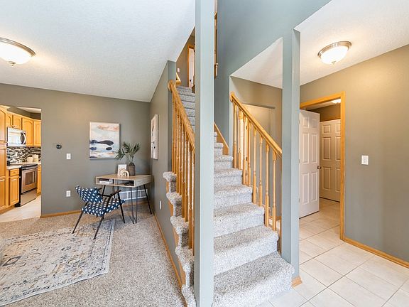 This well-cared-for 4-bedroom, two-story home is nestled in a sought-after neighborhood just steps from Pointe Vista Park, walking trails, schools, and more. From the moment you step inside, you’ll appreciate the vaulted entry and spacious front room—perfect for a home office or versatile flex space. The functional eat-in kitchen offers beautiful backyard views and opens to a generous family room filled with natural light, built-ins, and a cozy gas fireplace. Just off the 3-car garage, you’ll find a convenient mudroom/laundry area. Upstairs, the large primary suite features a walk-in closet and a spacious bathroom complete with a jetted tub. Three additional nicely sized bedrooms and a full bath round out the upper level. The clean, open lower level includes an egress window and is ready for your finishing touches. Enjoy the beautifully landscaped backyard from the brand-new deck—ideal for relaxing or entertaining. The 3-car garage also includes an additional bump-out, perfect for a workshop or extra storage. This home offers space, comfort, and perfect cul-de-sac location all in one! HSA 7 Star warranty included!