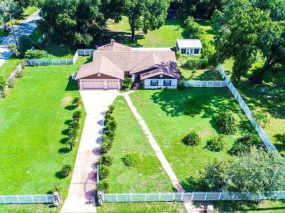 JACKPOT!! This home has square footage AND land! The extended driveway is beautifully lined with palm trees! The backyard provides privacy and PLENTY of room for outdoor activities. The yard is FULLY Fenced! BRAND NEW A/C Unit!! Generator serving entire home - never be without power!! Separate custom bath house - HOT TUB running on a 500 gallon propane tank. NEW tile and wood surfaces. NEW roof on the lanai. Spacious outdoor patio with a bar! NEW insulated garage doors. NEWer water treatment system 2013. NEW gutters, NEW fireplace and NEW appliances. Dual sinks and closets in the master bedroom. Outdoor sprinklers. Priced to sell.