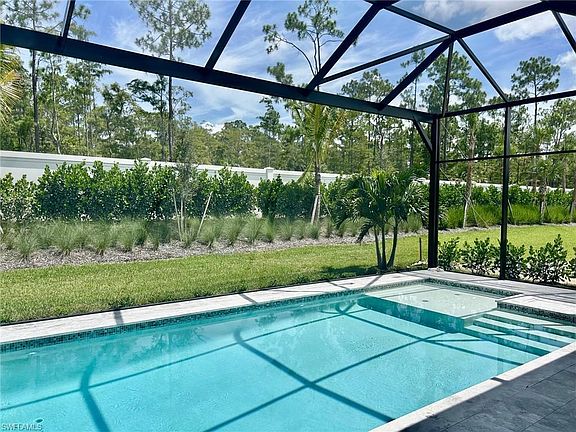 Discover new construction in Caymas by STOCK Development—a must-see opportunity! By the end of this year, you could be living in the Cambria III floor plan. This home features a gas kitchen cooktop, an outdoor kitchen with nearly 600 square feet of covered lanai space, and a stunning custom pool and spa package offering a very private and freshly landscaped view from the beautifully designed pool and spa. Caymas spans 780 picturesque acres in a prime Naples location, offering a unique waterfront lifestyle. Enjoy exclusive amenities including a kayak launch, golf simulator, private theater, billiards, dining options both indoor and outdoor, bocce, a dog park, and more. The impressive 25,000 square foot clubhouse provides ample opportunities to connect with friends and neighbors.