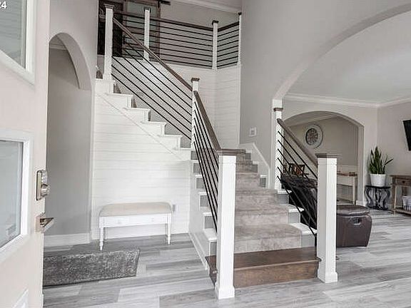 Welcome to your dream Luxury home with 4154 sq.ft. on 2.24 acres with high ceilings, stunning professional updates throughout! As you enter the property you see quality and style with the circular driveway, spectacular landscaping and pavers leading you home. The welcoming entry to this beauty makes coming home a breeze! Sprawling staircase. Excellent entertainers home with a large great room with a cozy gas fireplace and large windows. The dreamy kitchen has excellent countertop space and storage, granite ct, gas cooktop, wall oven and microwave, ss appliances, and island. Beautiful Dining room with wainscoting and french door to the covered patio. Living room is conveniently set off the dining room. Primary Suite ON THE MAIN LEVEL, will take your breathe away, spacious and beautiful, w/ nook space great for a nursery or office area in the primary suite, and the bathroom has a large roll/walk in tile shower, roomy walk in closet. A plus is the 2nd bedroom is on the main level and shares the primary bathroom! More room needed...no problem lets go upstairs to find the SECOND PRIMARY SUITE, simply stunning, unique and hard to find this tasteful of an opportunity for dual living. There are also 3 other bedrooms with lovely closets and plenty of room to live comfortably. The bathrooms have top notch updates ranging from granite, quartz, and tile. Clean, sharp, spacious, dreamy! The attached 3 car garage floor has epoxy and storage galore! Laundry room features sink, counter top and cabinets. Outdoor living features a covered patio 27'X24'. Outdoor speakers on rear patio. Outbuilding has 6 bays, one w/taller door, bi cabinets, extra exterior lights for security, so much room for projects, toys, hobbies, bathroom w/shower! Property has a fence around a the home and yard areas. Paved driveway. Tool shed. Attached basketball hoop. Prewired for you to bring your own hot tub. Built in speaker in home. Gas hookup for BBQ. SAUNA/FIREPIT/GOLF SIMULATOR, Amplifier ALL EXCLUDED.